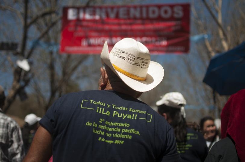 Two years ago, just on the border between San Pedro Ayampuc and San José del Golfo, just north of Guatemala City, a small woman stopped in front of an excavator and forced it to retreat. Estela Reyes, a resident of El Carrizal, parked her car in the middle of the road, got out and didn’t move from there for almost an hour. It was the 1st March 2012 and this gave rise to ‘La Puya’.