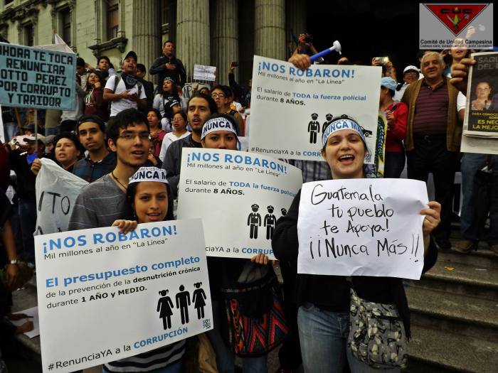 “Given the history and on-going reality of repression and impunity in Guatemala, this is a very courageous display of citizen action,” said Grahame Russell, director of the human rights NGO Rights Action in a recent newsletter. “Repression is a very real reality in the coming days and weeks as a growing number of people overcome their fear and peacefully take to the streets to express their indignation at so many generations of corruption, exploitation, repression and impunity.”