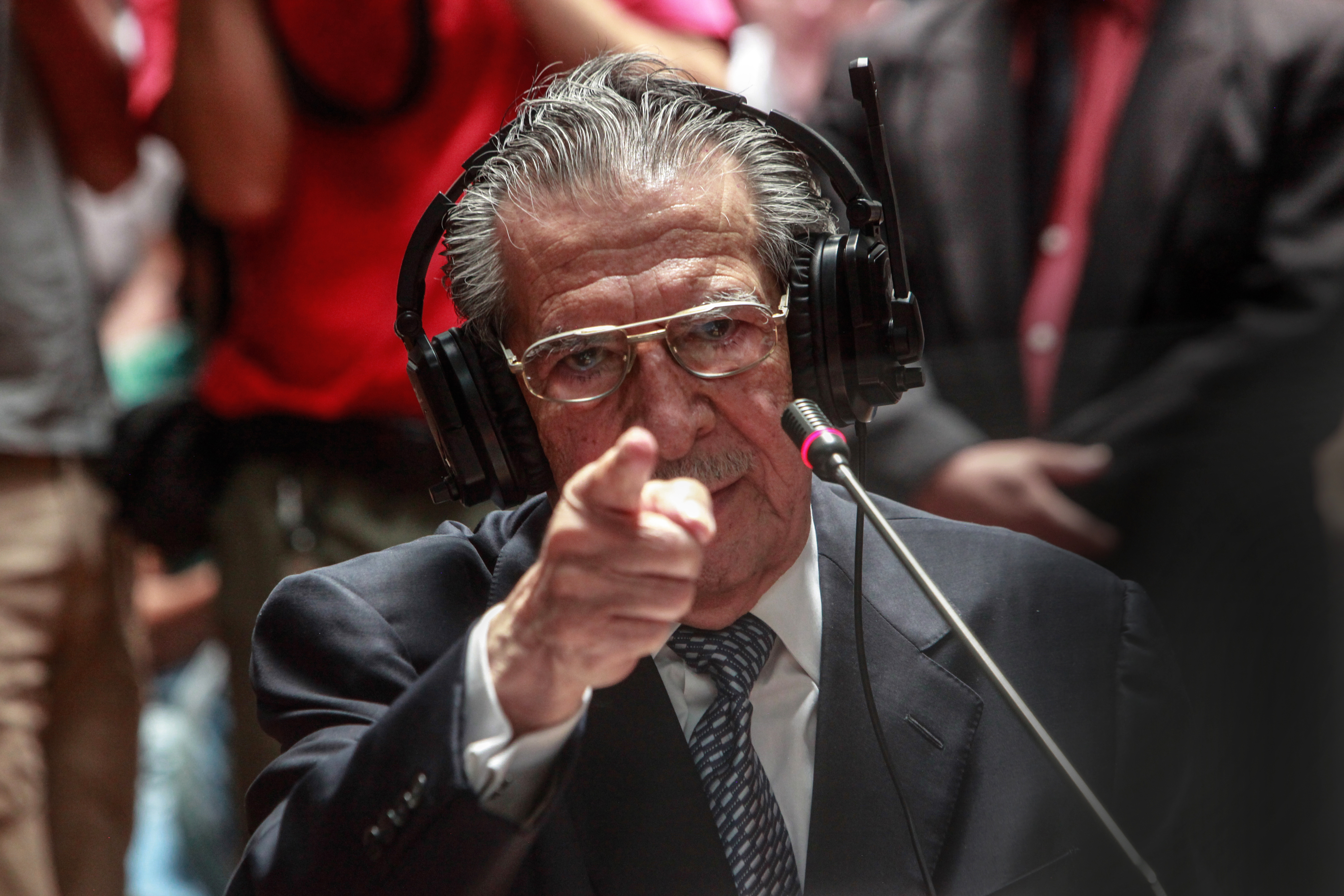 Former General Efrain Rios Montt testifying during genocide in 2013 trial. Photo: Elena Hermosa / Trocaire, licensed under Creative Commons.