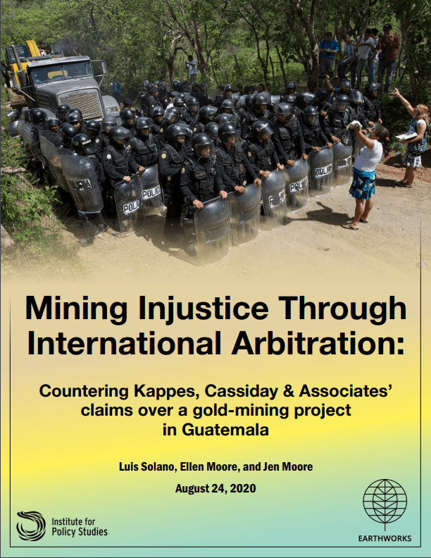 A new report exposes omissions and misrepresentations in a Nevada-based mining company’s more than $400 million suit against the Guatemalan government. Released today, Mining Injustice Through International Arbitration: Countering Kappes, Cassiday & Associates’ Claims over a Gold-mining Project in Guatemala, examines Kappes, Cassiday & Associates (KCA) attempt to strong-arm the Guatemalan government through international arbitration into green-lighting the unwanted El Tambor gold mine — or compensating the mining firm for hundreds of millions of dollars in future profits it had little hope of ever earning.