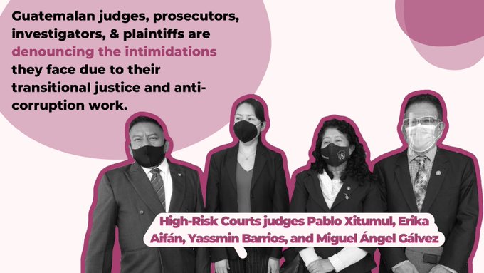 In Guatemala judges, prosecutors, and investigators involved in high-profile and precedent-setting cases are facing regular threats and unfounded charges against them due to their anti-corruption and transitional justice work.