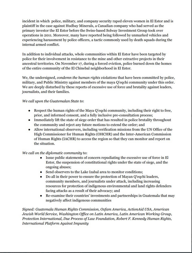 You can read more about the history and situation in El Estor among these pieces that GSN has featured, here, GSN – El Estor.
